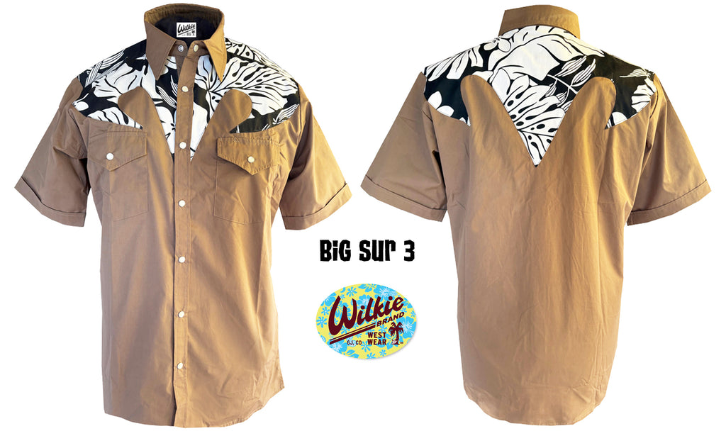 REGULAR / SLIM FIT: Shirt is Brown with a Black & Off-White Hawaiian Pattern Yoke.